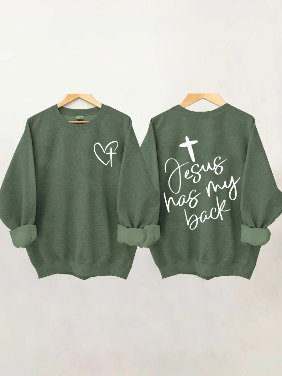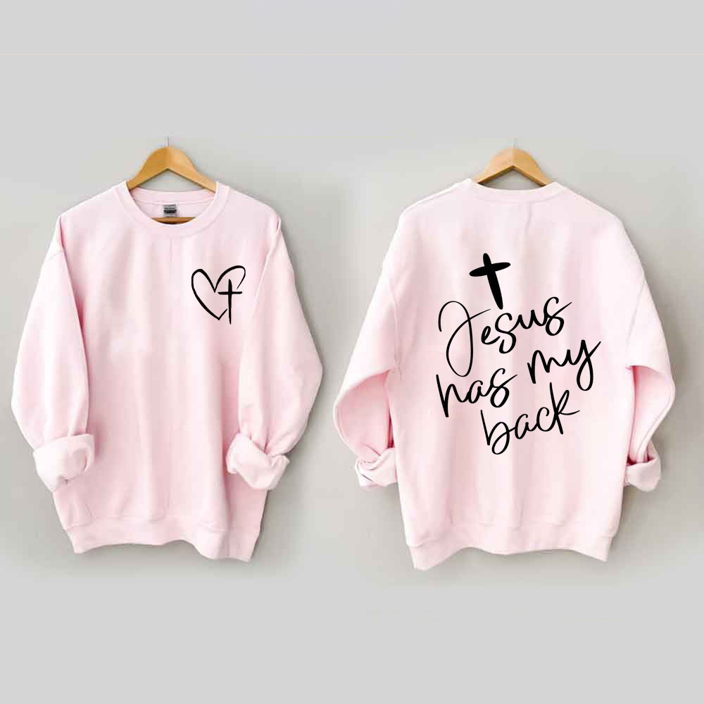 Jesus Has My Back, Heart Cross Sweatshirt