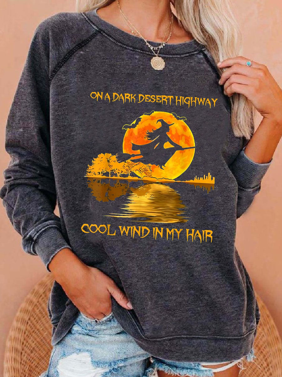 On A Dark Desert Highway Cool wind In My Hair Halloween Sweatshirt