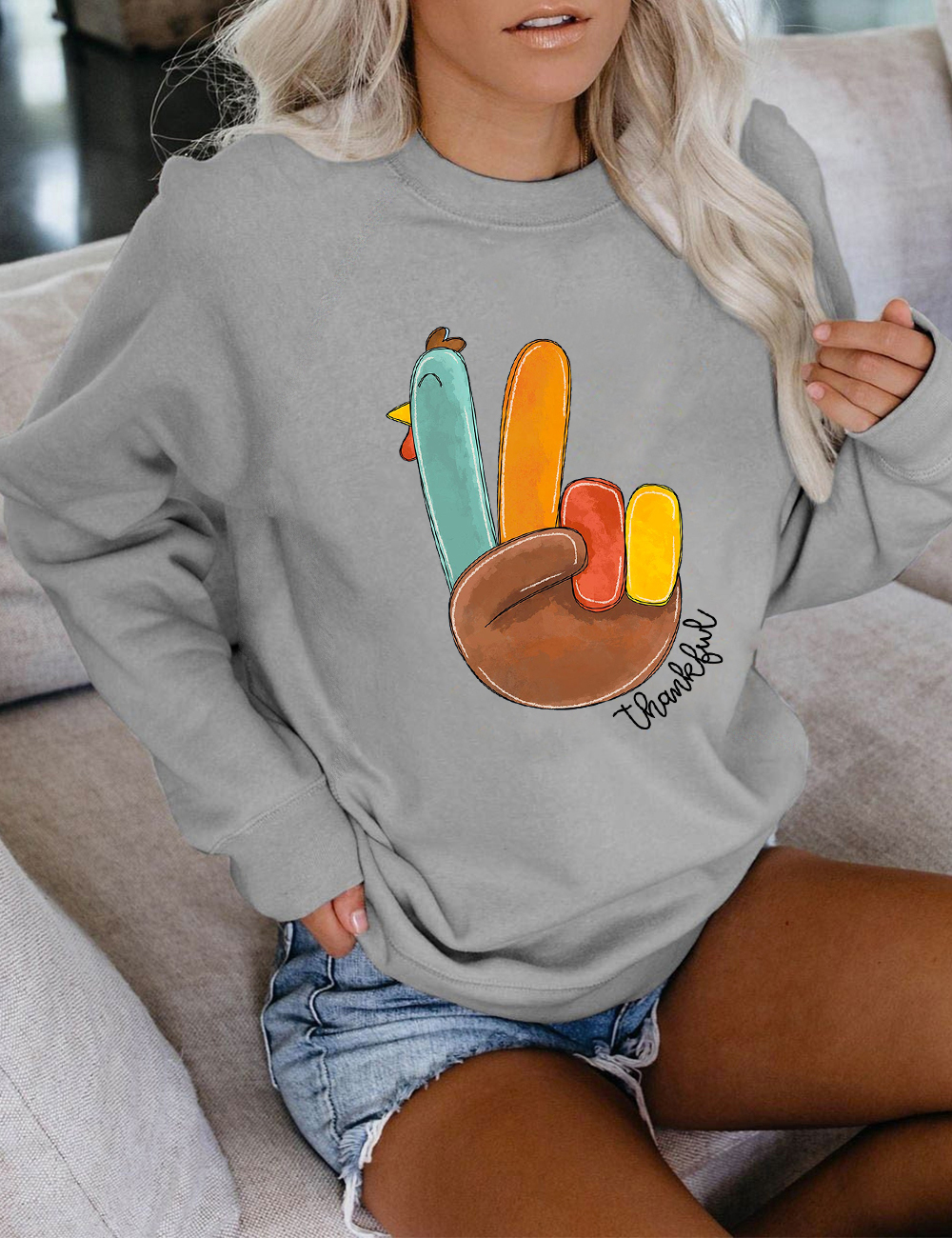 Peace Sign Turkey Thankful Sweatshirt
