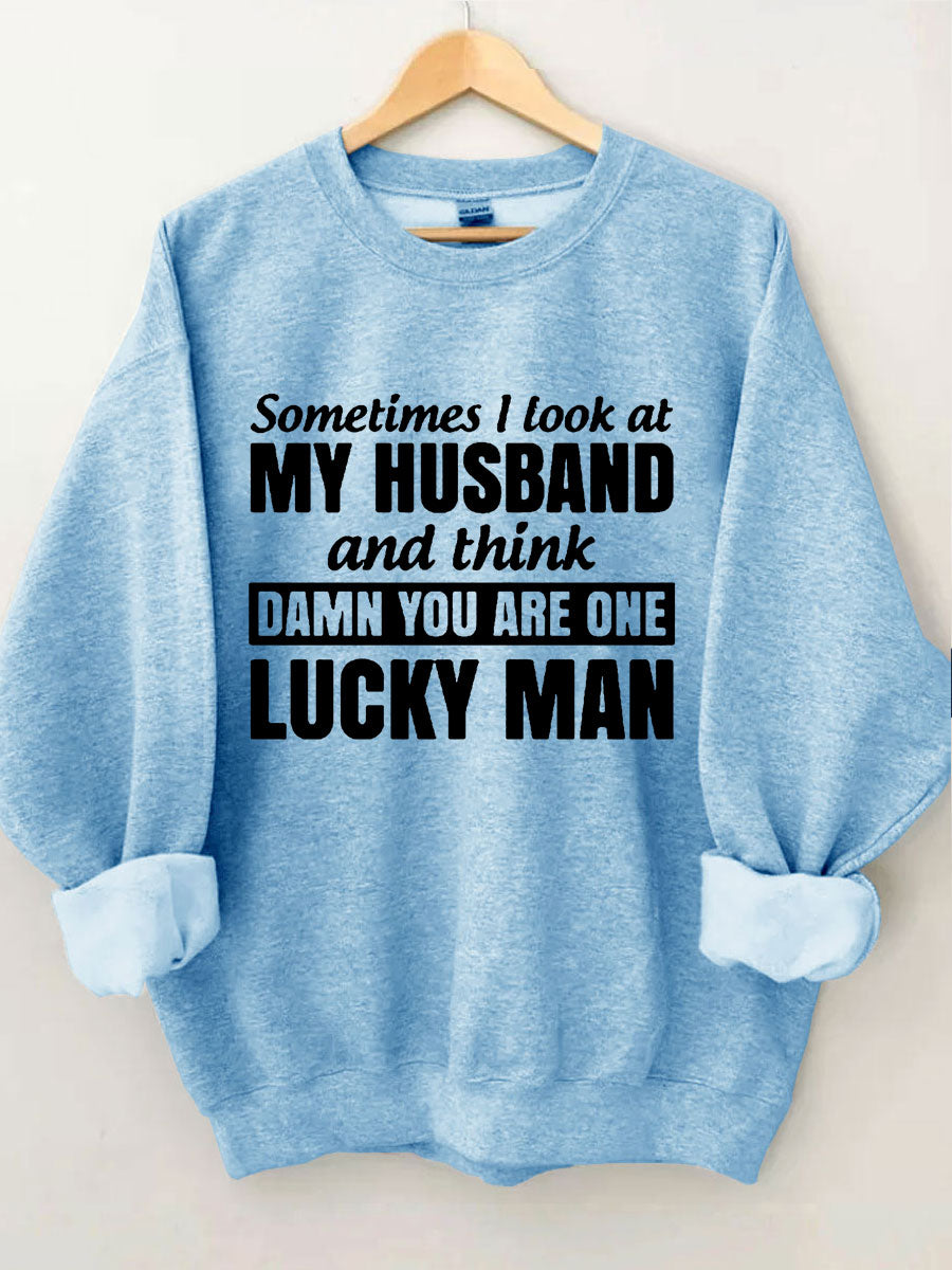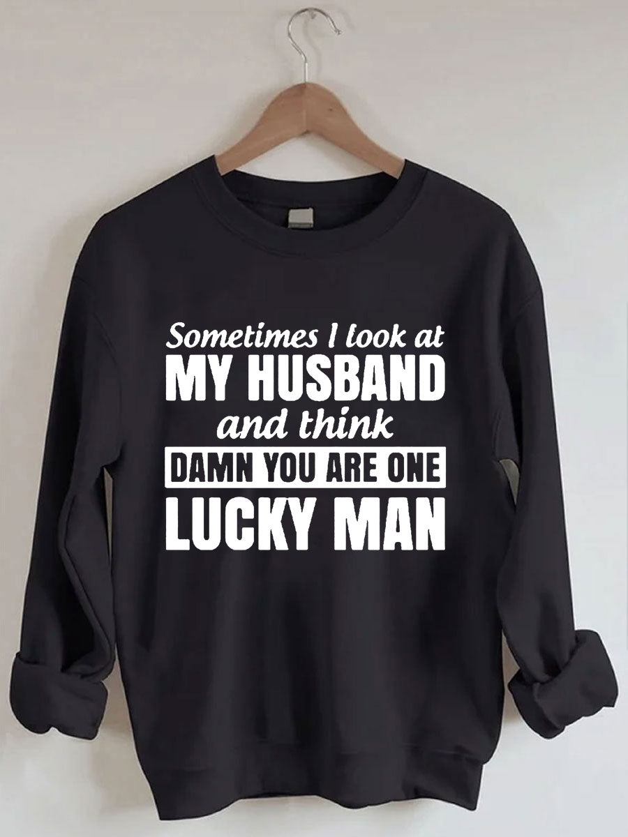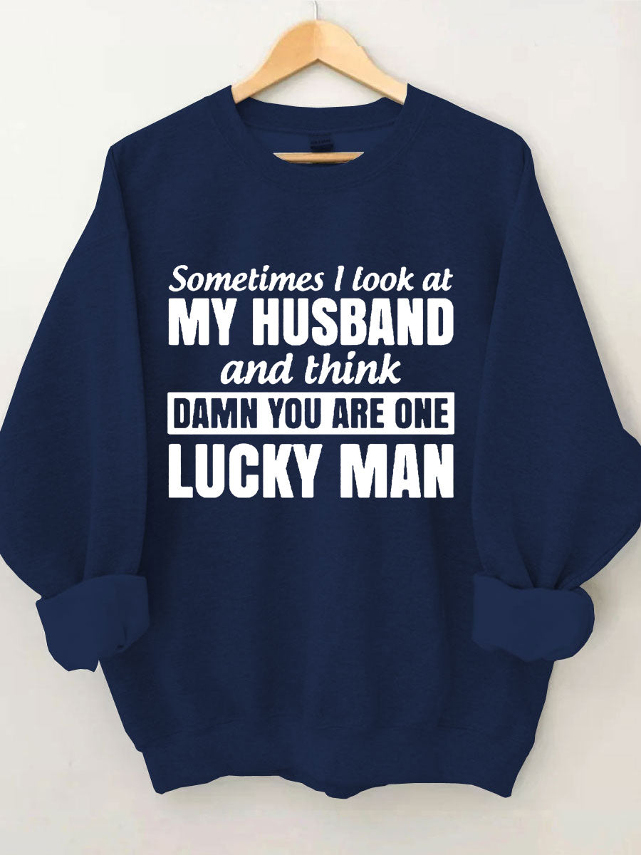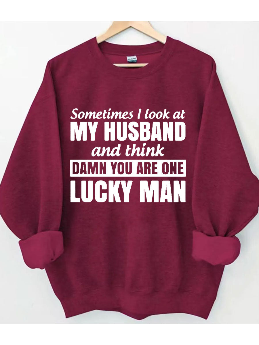 Sometimes I Look At My Husband And Think Damn You Are One Lucky Man Sweatshirt