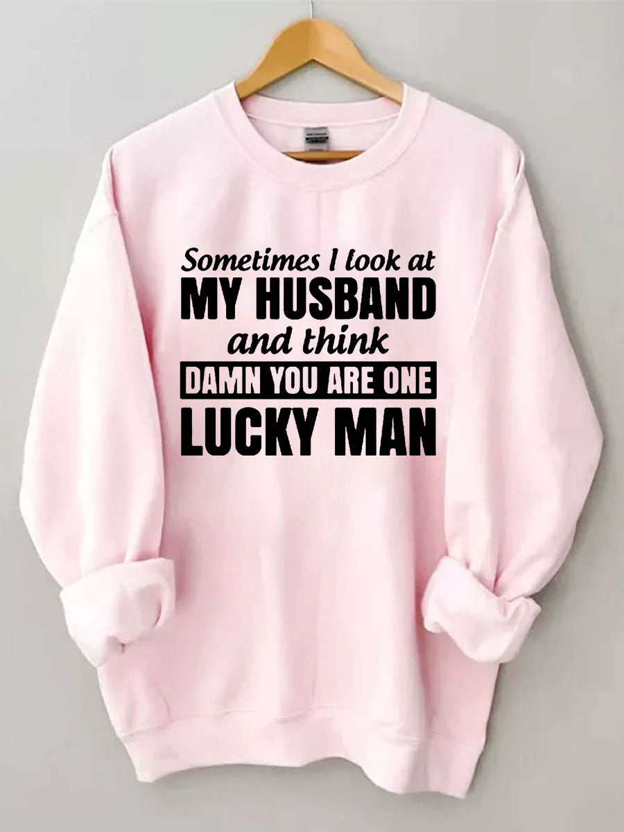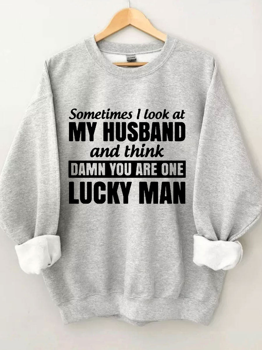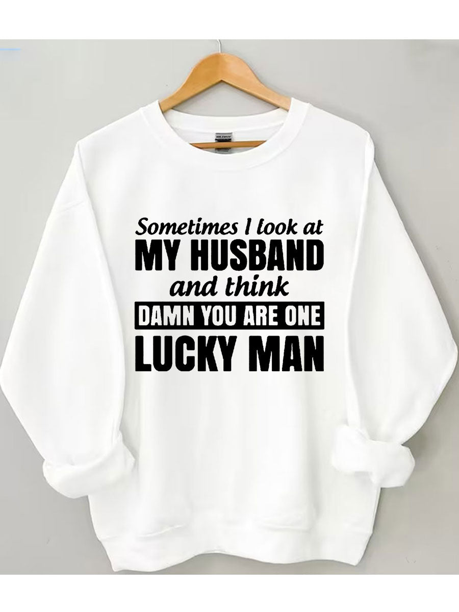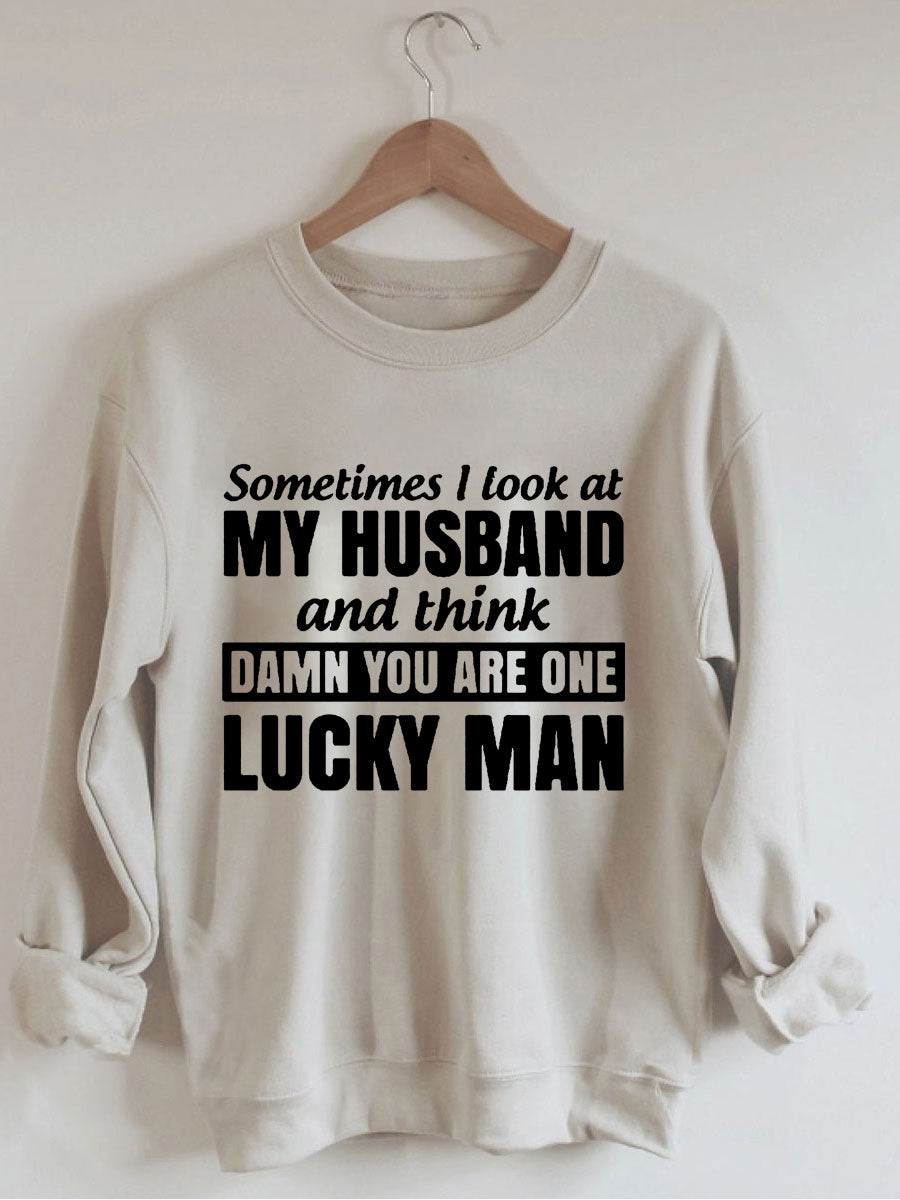 Sometimes I Look At My Husband And Think Damn You Are One Lucky Man Sweatshirt